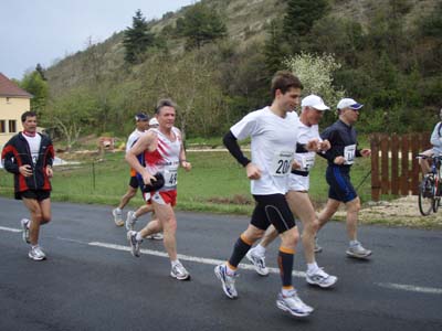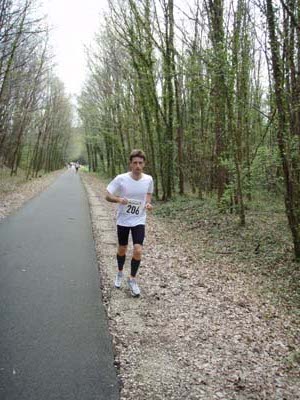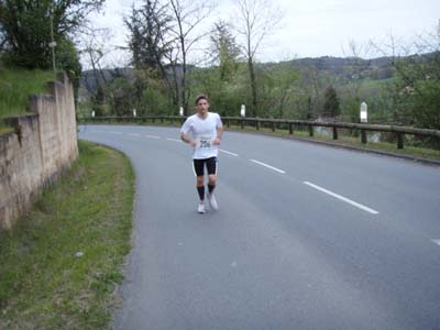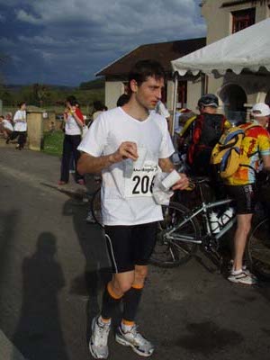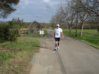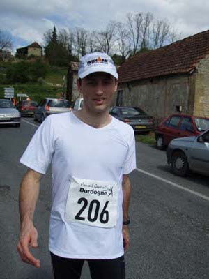 Et voici Benjamin, qui a une bonne foulée, à environ 11km heure. L'optimisme règne toujours. |