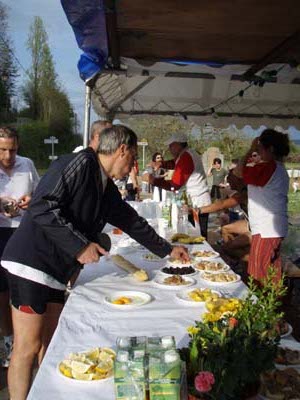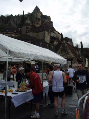 | Les ravitaillements, sous les chateaux de la Dordogne : pain d'épice, pates de fruits, chocolat, rillette, emmental, vache qui rit, pruneaux, figues... mais pas de fois gras au grand désespoir de Cécile qui aurait bien fait un déjeuner sandwich fois gras aux figues sèches... sniff ! Ce ne sera pas de la nourriture de châtelains pour aujourd'hui. | |
