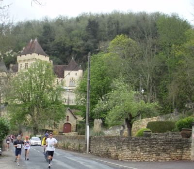 Départ des accompagnateurs à 7h20. La polaire est encore de rigueur pour les accompagnateurs en vélo car il fait encore assez frais, surtout dans la descente pour sortir de Belves : 40 km/h, ce sera le plus rapide de la journée.