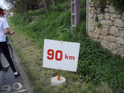 Ce panneau fait plus plaisir que tous ceux d'avant. 90 km, c'est bientôt la fin ! |