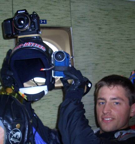 C'est pas trop ennuyeux d'être vidéoman ?Evrard Sainte-Croix se serait écrié "j'adore !". On a un rôle à part dans le saut, surtout si c'est un saut de compétition car sans video, pas de note. La préparation au sol du matériel est essentielle, surtout en photo (avant, il y avait le choix de la pellicule, de l'optique, de l'ouverture, parce qu'une fois en chute, c'etait mort, maintenant avec le numerique, "c'est plus pareil") ;et la surpise quand on se passe le film, avec le classique ""euh desolé j'avais pas appuyé sur ON", ou qu'on allait chercher les photos développées (ca me rend vieux ca), . |